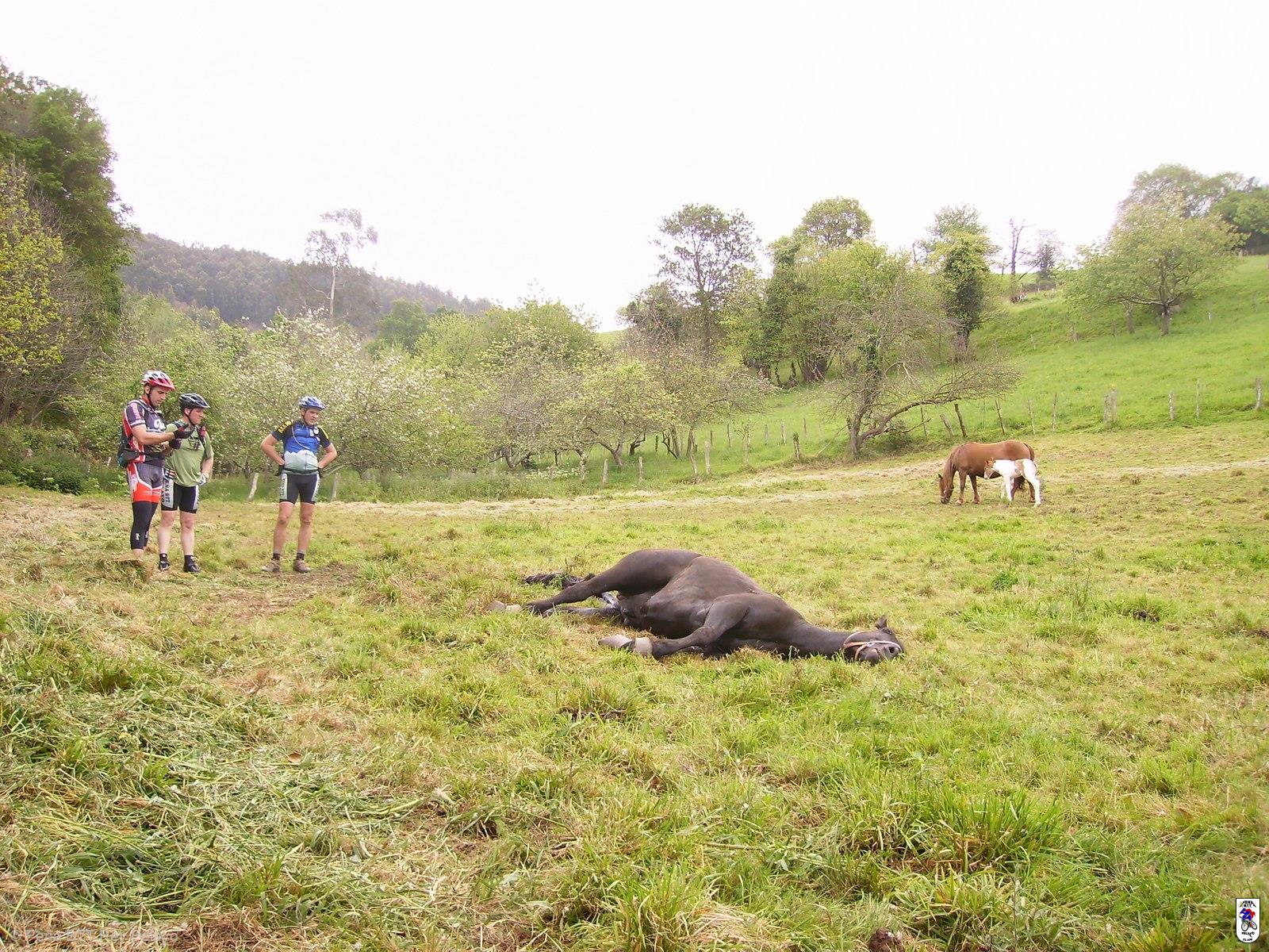 al fondo, un potro pastando trankilo, recien nacido